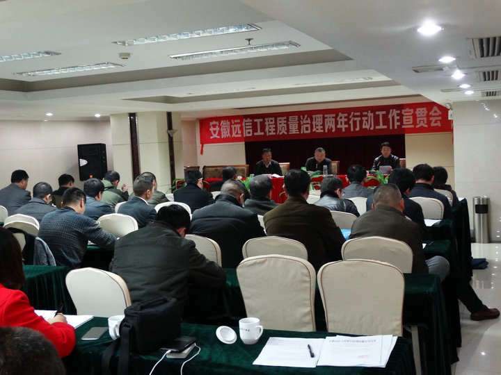 11月25日上午,公司召開工程質量治理兩年行動工作宣貫會。公司董事長余松林、總經理朱敏、常務副總經理兼總工程師郝傳山,以及項目總監、總監代表等40余人參加了會議。會議由朱敏主持。