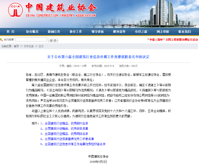 公司報紙網站雙雙蟬聯全國建筑行業優秀媒體