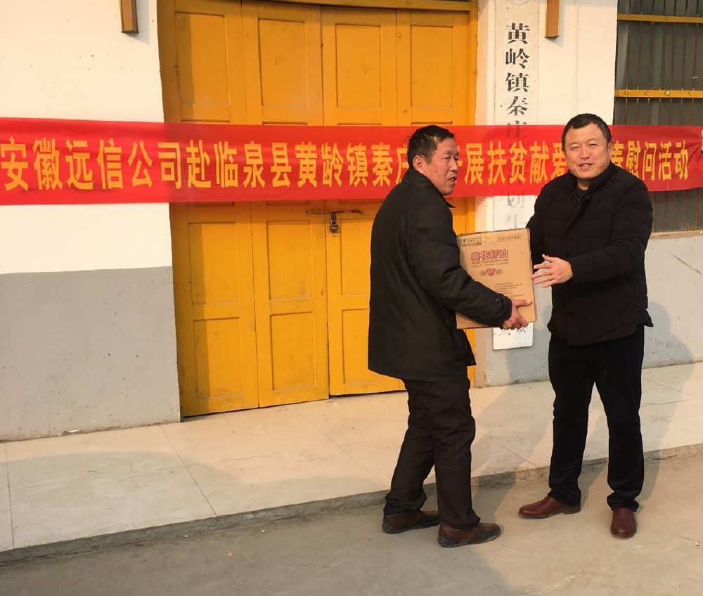 2017年1月17日,新春的腳步漸漸近了。踏著春的步伐,尋著年味,公司董事長(zhǎng)余松林帶著慰問(wèn)品,專(zhuān)程到臨泉縣黃齡鎮(zhèn)秦莊村,送去新年的問(wèn)候和祝福。