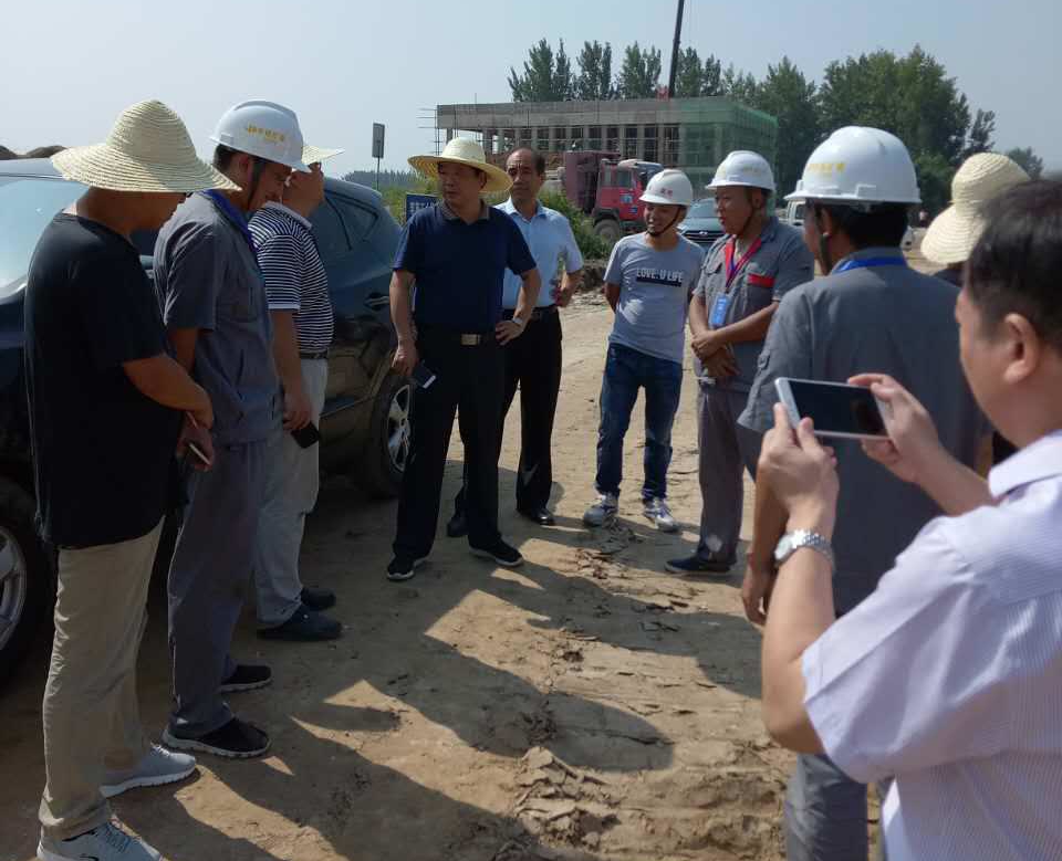 8月25日上午,淮北市高鐵新區路網項目工地上,艷陽高照,機械轟鳴。淮北市市委常委、市政法委書記錢界殊率檢查組蒞臨工地現場檢察指導。