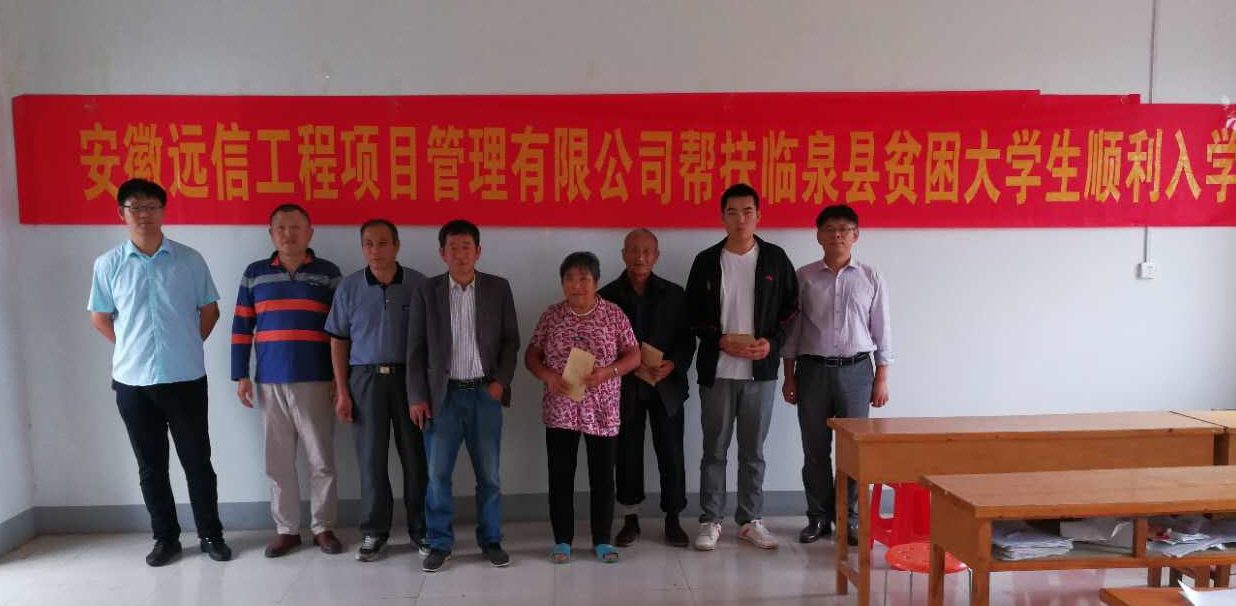據了解,公司近年來已在臨泉縣、含山縣、金寨縣、舒城縣等多地進行了各類幫扶及慰問活動。累計捐贈善款近十萬元,有數十戶家庭從中受益。有效解決了困難家庭的燃眉之急,圓了困難子女的“升學夢”,同時,也較好地體現了企業的人文關懷和社會責任。