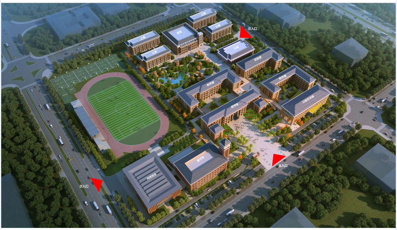 巢湖二中西南向日景鳥瞰效果圖