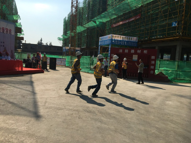 演練過程模擬了施工現場外架作業人員違章使用安全帶致使墜落后的緊急處理過程。本次演練在多部門的密切配合下,從事故的發生、報告、到快速實施救援、排除隱患和清理現場,整個救援過程指揮有序、反應迅速、處置規范,取得了圓滿成功,為安全生產突發事件的防范、應對和處置提供了很好的指導和示范作用。