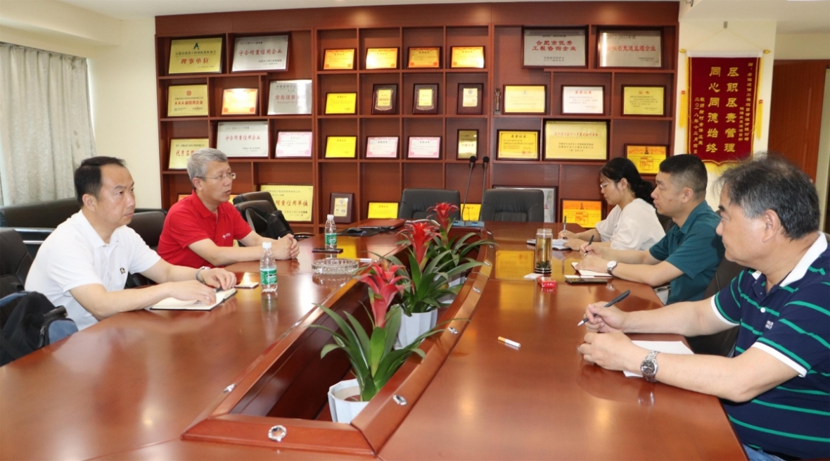 近日,泰康健康產業投資控股有限公司供應鏈業務部采購經理李瑋、徽園項目部總經理唐正新赴安徽遠信考察交流。公司總經理朱敏熱情接待了考察組一行,副總經理董傳金、總工楊家琴參加座談交流。