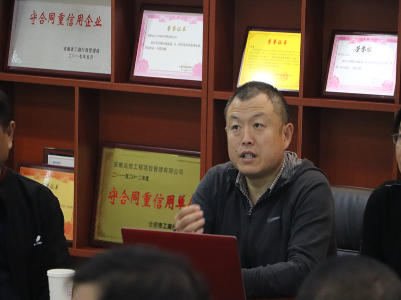 10月18日上午,安徽遠信2020年上半年項目管理例會在公司會議室召開。公司領導班子成員、各項目總監以及分公司代表參會,部分總監代表列席會議。會議由總工楊家琴主持。會議分別聽取了各項目總監和分公司負責人關于項目形象進度、現場質量控制、安全監理等情況的工作匯報,以及第三方質量安全巡查組代表孫然針對部分區縣三巡工作開展情況的詳細匯報。