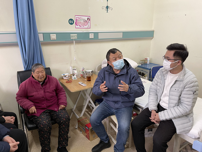 在住院部病房,余松林董事長關(guān)切詢問了馬老的身體狀況和生活情況。老人雖年事已高,但仍舊頭腦清醒、精神矍鑠,對遠(yuǎn)信黨支部一行的到來感到非常高興,并激動(dòng)地講述起參加渡江戰(zhàn)役的親身經(jīng)歷。