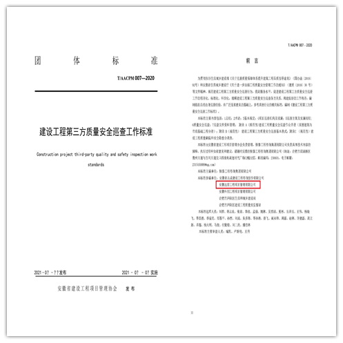 《建設(shè)工程第三方質(zhì)量安全巡查工作標(biāo)準(zhǔn)》是安徽省建設(shè)工程項(xiàng)目管理協(xié)會2020年底批準(zhǔn)立項(xiàng)的團(tuán)體標(biāo)準(zhǔn),旨在提升我省監(jiān)理行業(yè)第三方巡查服務(wù)工作水平,統(tǒng)一項(xiàng)目巡查工作的評價標(biāo)準(zhǔn),探索工程監(jiān)理企業(yè)參與監(jiān)管模式。新時代下高質(zhì)量發(fā)展是行業(yè)發(fā)展的目標(biāo),規(guī)范化、標(biāo)準(zhǔn)化是高質(zhì)量發(fā)展的必由之路,此次標(biāo)準(zhǔn)編制對促進(jìn)行業(yè)發(fā)展、企業(yè)轉(zhuǎn)型升級具有重要意義。