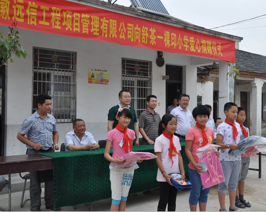 捐贈儀式上,余松林董事長在熱情洋溢的致辭中,簡要介紹了公司基本情況和活動的目的后,感慨地說道:“今天來到一顆印小學,是我們安徽遠信公司捐資助學、回饋社會活動的首站,也是第一次開展這樣的公益性活動。雖然我們的付出或許很微薄,但足以體現我們安徽遠信公司所迸發出的社會責任感和使命感,我們將堅定不移地把這份愛心延續下去,希望能有更多的企業、更多的有識之士能攜手關注這群農村留守兒童群體,給他們更多的關愛。”